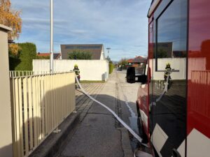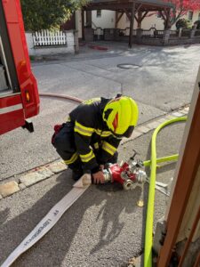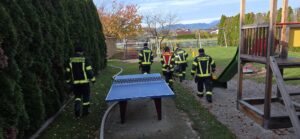 Am 2. November fand eine realitätsnahe Einsatzübung beim örtlichen Kindergarten statt. Übungsannahme war ein Brand im Gartenbereich, der einen raschen Löschangriff erforderte. Dabei wurde auch der Umgang mit dem Feuerwehrschlüsselkasten wiederholt, um den Zutritt zum Gelände und Gebäude im Ernstfall sicherzustellen. Das HLF1-W übernahm die Brandbekämpfung, während das TLFA 4000 die Wasserversorgung sicherstellte und anschließend einen Objektschutz aufbaute. Im Anschluss wurden die Besonderheiten des Objekts wiederholt und die Mitglieder darauf aufmerksam gemacht, was bei Einsätzen mit Kindern wichtig ist.