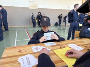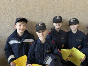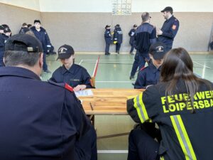 Bei verschiedenen Stationen – darunter Geräte erkennen, Knotenkunde, Dienstgrade, Sirenensignale sowie ein Testblatt – stellten sich unsere 7 Jugendlichen der Herausforderung.